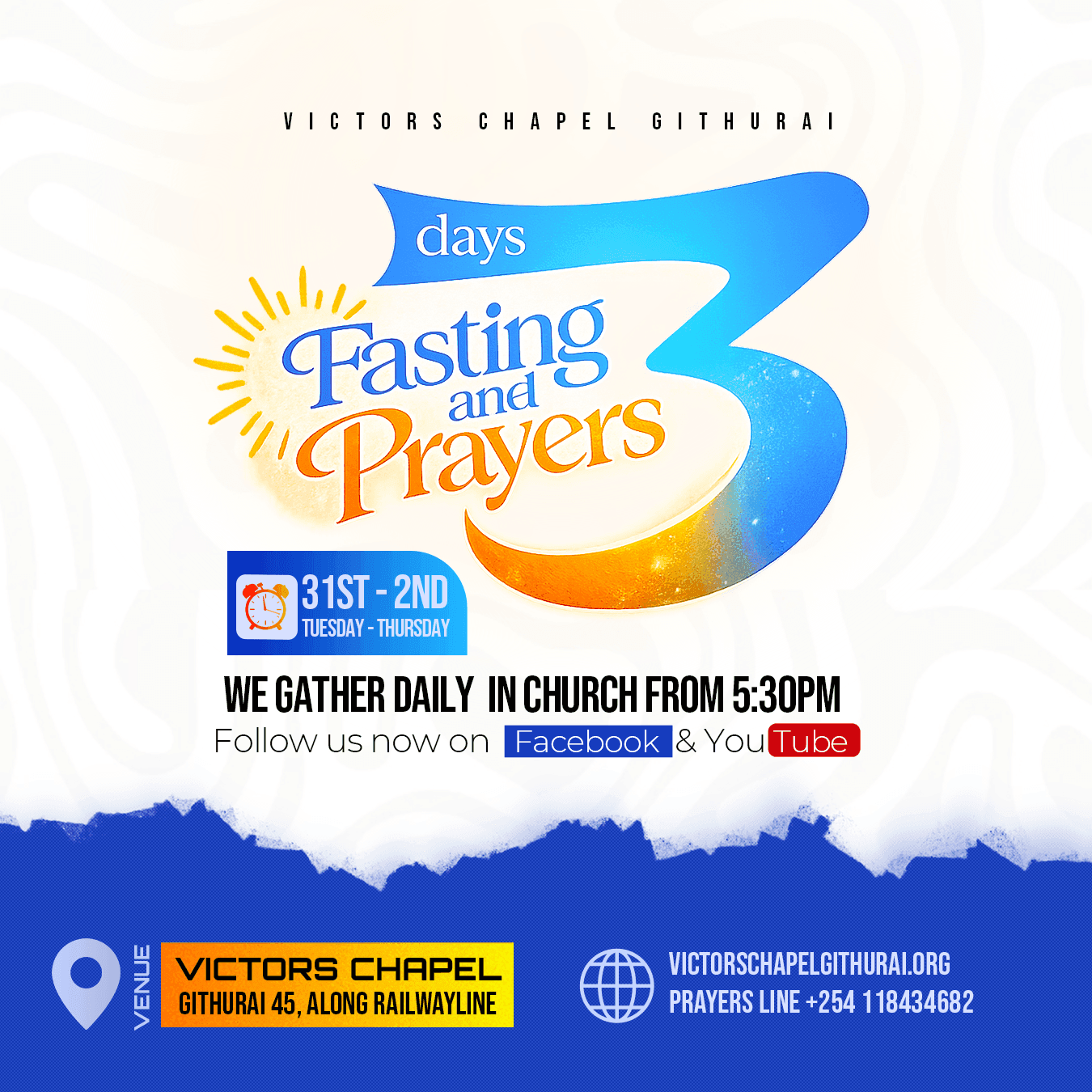 Family, it’s that time again! As we step into the month of April, we’re setting aside three powerful days — 31st March to 2nd April (Tuesday to Thursday) to intentionally seek God through fasting and prayer at Victors Chapel Githurai. We’re beginning a day earlier so we can step into the new month already aligned, refreshed, and spiritually charged.
